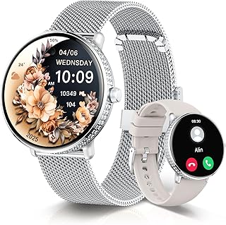 LES FLEURS Smart Watches for Women with 2 Bands, 1.54\\\" Womens Smartwatch Answ..